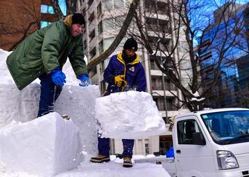 | Keywords: Sailors participate in 67th Annual Snow Festival 160131-N-OK605-042.jpg  en 160131-N-OK605-042 SAPPORO Japan Jan 31 2016 Members of the U S Navy ™s 2016 Sapporo Snow Team Builder 1st Class Thomas Thornton from Huntington Mass left and Operations Specialist 2nd Class Ellington Morgan from Sacramento Calif remove a block of snow while shaping a 10 feet by 10 feet three-dimensional surface warfare pin snow sculpture in preparation for the 67th Annual Sapporo Snow Festival The pin is being carved in honor of the prestigious warfare program and the stellar Sailors who have attained the qualification This is the 33rd consecutive year that the U S Navy has sent a team of Sailors to participate in the festival U S Navy Photo by Mass Communication Specialist 3rd Class Samuel Weldin/Released Unit Naval Air Facility Misawa DVIDS Tags chainsaw; Sapporo Snow Festival; Naval Air Facility Misawa; snow sculpture; Surface Warfare Pin 2016-01-31 Petty Officer 3rd Class Samuel Weldin https //www dvidshub net/image/2379436/sailors-participate-67th-annual-snow-festival 160131-N-OK605-042 2016-02-02 00 29 SAPPORO HOKKAIDO JP PD-USGov-Military-Navy Naval Air Facility Misawa Chainsaws Images from DoD uploaded by Fæ |