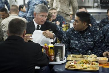 Keywords: Sailors participate in San Francisco Fleet Week 2012 121005-N-SK590-094.jpg en Aviation Boatswain's Mate Handling 3rd Class Fernando Hinostroza talks to Vice Adm Gerald Beaman commander of U S 3rd Fleet on the mess decks of the amphibious assault ship USS Makin Island LHD 8 during San Francisco Fleet Week San Francisco Fleet Week is scheduled from Oct 3-8 and brings more than 2 500 sailors Marines and Coast Gaurdsmen from four ships to the city of San Francisco in order to highlight the personnel technology and capabilities of the sea services The U S Navy has a 237-year heritage of defending freedom and projecting and protecting U S interests around the globe Join the conversation on social media using warfighting U S Navy photo by Mass Communication Specialist 3rd Class Tim D Godbee 2012-10-05 Petty Officer 2nd Class Timothy Godbee https //www dvidshub net/image/719607 121005-N-SK590-094 2012-10-11 07 17 SAN FRANCISCO CA US PD-USGov-Military-Navy Gerald R Beaman USS Makin Island LHD-8 Images from DoD uploaded by Fæ |