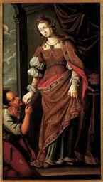 | Keywords: Saint Elisabeth of Hungary and a Beggar 1675-1680.jpg author between 1675 1680 Oil on canvas Size cm 110 198 Institution Hungarian National Gallery object history Csere a győri püspökséggel exhibition history credit line Restaurálta Szutor Katalin és Zsámboky Orsolya 1986-ban accession number 81 8 M Mikó Árpád Sinkó Katalin szerk Történelem-Kép Szemelvények múlt és művészet kapcsolatáról Magyarországon A Magyar Nemzeti Galéria kiadványai 2000/3 cat no V-24 http //muzeum arcanum hu/kiadvanyok Magyar Digitális Múzeumi Könyvtár PD-old-100 Paintings of Elisabeth of Hungary Paintings by unknown painter in the Hungarian National Gallery 1670s paintings in Hungary Religious paintings in the Hungarian National Gallery |