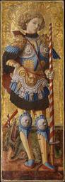 Keywords: Saint George - Carlo Crivelli.jpg Artwork Creator Carlo Crivelli 1472 tempera wood with gold ground in 38 13 25 Institution Metropolitan Museum of Art http //www metmuseum org/Collections/search-the-collections/110003397 rpp 20 pg 1 gallerynos 606 ft pos 20 Metropolitan Museum of Art Other versions PD-100 Assessments Assessments 1 Saint George Saint George 1472 paintings 1472 polyptych by Carlo Crivelli Paintings uploaded by Chris Woodrich Paintings of Saint George and the Dragon Tempera on panel Decorative patterns |
