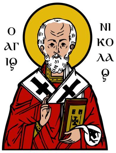 | Keywords: Saint Nicholas of Myra.png Bad extraction SVG el Άγιος ικόλαος Αρχιε ίσκο ος ύρων της Λυκίας ο Θαυματουργός<br /><br /> Ο άγιος ικόλαος εικονίζεται στηθαίος γέρων στρογγυλογένης σχεδόν φαλακρός με έντονα ζυγωματικά στον καθιερωμένο εικονογραφικό τύ ο ροτομή σε στάση μετω ική ενδεδυμένος την αρχιερατική ενδυμασία Φορεί ερυθρό φαιλόνιο με κολάρο ου καλύ τει το λαιμό ίσω και στα λάγια αφήνοντας ακάλυ το μονάχα το μ ροστινό μέρος χρυσά ε ιμάνικα και τεφρόλευκο ωμοφόριο κοσμημένο με μεγάλους μαύρους σταυρούς Υψώνει το δεξί χέρι έμ ροσθεν του στήθους του ευλογών ενώ με το αριστερό κρατεί όρθιο κλειστό χρυσο οίκιλτο κώδικα ευαγγελίου Το άχος των σελίδων του ευαγγελίου είναι ορφυρό Την κεφαλή του αγίου εριβάλλει εγχάρακτος φωτοστέφανος 2014-05-28 15 04 36 http //openclipart org/detail/93889/saint-nicholas-by-ovideva Έργο αυτού ου το ανεβάζει based on work by ovideva cc-zero Uploaded with UploadWizard Saint Nicholas in heraldry Images from openclipart org Clip art of people |