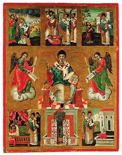 Keywords: Saint Spiridion (Greece, 1744).jpg Святой Спи идон с житийными сценами 1744 press photot 1744 anonymous PD-old-100 Synaxis exhibition Uploaded by Shakko/Photos Icons of Saint Spiridion Hagiography icons