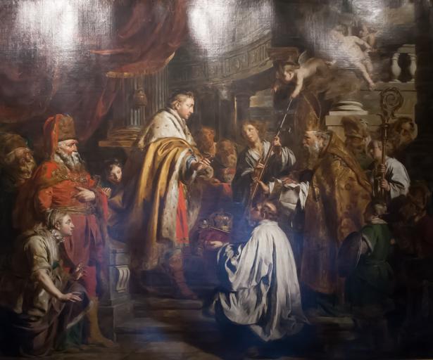 | Keywords: Saint Stephen receives the Pope's envoys.jpg Artwork Creator Pieter Jozef Verhaghen 1770 Oil on canvas Size cm 342 284 LangSwitch Owner Tulajdonos Institution Budapest Museum of Fine Arts LangSwitch Exhibited Kiállítva Institution Hungarian National Gallery Mikó Árpád Sinkó Katalin szerk Történelem-Kép Szemelvények múlt és művészet kapcsolatáról Magyarországon A Magyar Nemzeti Galéria kiadványai 2000/3 cat no V-43 object history credit line bottom right P J Verhaghen Aerschotonus F 1770 accession number 6782 photo by Szilas in the Hungarian National Gallery <gallery> Verhaghen Saint Stephen receives the Pope's envoys 1700 jpg </gallery> PD-old-100 Pieter Jozef Verhaghen History paintings in the Hungarian National Gallery Southern Netherlandish paintings in the Museum of Fine Arts Budapest 1770 oil on canvas paintings 1770 paintings in Hungary 18th-century history paintings Hungary in history paintings Paintings of Stephen I of Hungary Holy Crown of Hungary in art 18th-century oil on canvas paintings in Hungary |
