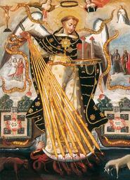 | Keywords: Saint Thomas Aquinas, Protector of the University of Cusco.jpg Artwork Creator Cuzco School Saint Thomas Aquinas Protector of the University of Cusco - 1690 1695 technique oil canvas cm 117 161 Institution Museo de Arte de Lima http //www googleartproject com/pt-br/collection/mali-museo-de-arte-de-lima/artwork/saint-thomas-aquinas-protector-of-the-university-of-cusco-anonymous-cusco-school/548086/ details Google Art Project Other versions PD-old-100 Cuzco School Paintings in the Museo de Arte de Lima 1690s paintings 17th-century oil on canvas paintings 17th-century paintings of Christian saints Paintings from Peru Paintings of Thomas Aquinas People holding models of churches in art Arrows in art 17th-century paintings of angels |