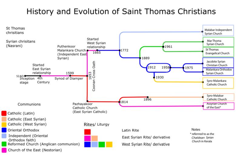 Keywords: SaintThomasChristian'sDivisionsHistoryFinal.png en A chart depicting the chronology of events that occured to the St Thomas Christians community in India and how they were divided into its present constituents 2016-10-08 own Kokkarani other versions cc-by-sa-4 0 Christianity in India Diagrams in English Timelines of Saint Thomas Christians |