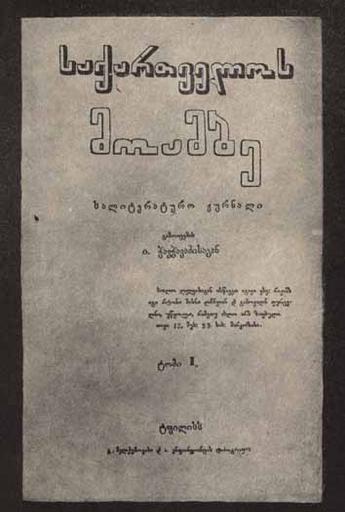 | Keywords: Sakartvelos moambe.jpg en Magazin Saqartvelos Moambe established by Ilia Chavchavadze in Tbilisi in 1863 ka საქართველ ს მ ამბის http //publish dlf ge/vaxtangvi/chavchavadzeilia/saqartvelos 20moambe jpg publish dlf ge 1863 Ilia Chavchavadze - editor The editor Ilia Chavchavadze died in 1907 Source http //publish dlf ge/vaxtangvi/chavchavadzeilia/biografia htm publish dlf ge PD-old 1863 in Georgia 1863 in Tbilisi Ilia Chavchavadze 1863 newspapers Mkhedruli book covers | ||||