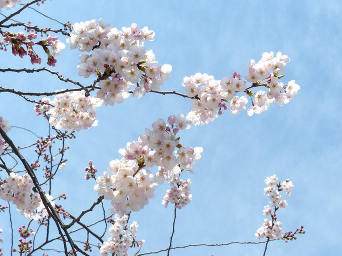 Keywords: sakura cheery blossom sky spring tree pink nature plant white blooming season branch flower petal japan freshness bright leaf