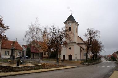 Keywords: Šakvice church 01.JPG en Šakvice church on the village common cs Šakvice část návsi s kostelem Own feťour 2009-11-22 Šakvice Church of Saint Barbara Šakvice