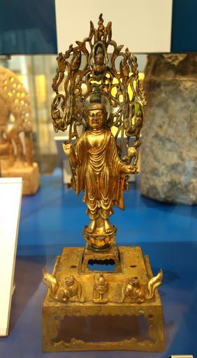 Keywords: Sakyamuni Buddha, China, Tang dynasty, 8th century AD, gilt bronze - Royal Ontario Museum - DSC04101.JPG en Exhibit in the Royal Ontario Museum Toronto Ontario Canada This work is old enough so that it is in the public domain Photography was permitted in the museum without restriction 2013-10-08 14 44 14 own Daderot cc-zero Metalwork of China in the Royal Ontario Museum Uploaded with UploadWizard Metalwork of the Tang Dynasty |