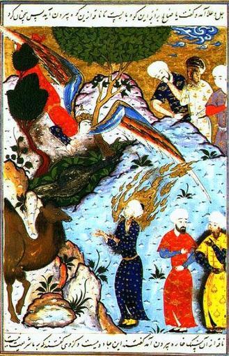 | Keywords: Salih and the she camel.jpg  en A depiction of Salih inviting his people to see the She-Camel from an illuminated manuscript version of Stories of the Prophets Illuminated Manuscript collection of Stories of the Prophets Islamic miniature artist d 427 A H Saleh Islamic miniatures Angels in Islam People with camels in art PD-old-100 |