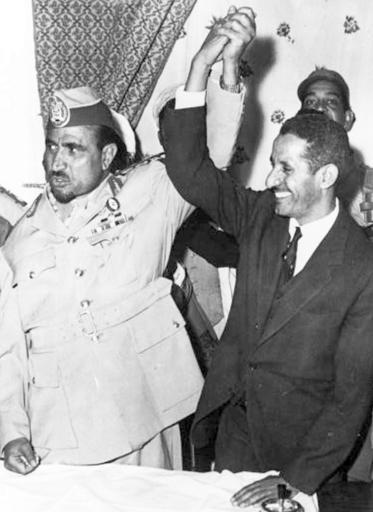 | Keywords: Sallal+Jaify.jpg en North Yemeni president Abdullah as-Sallal left with his new prime minister Hammoud al-Jaifi right ar الرئيس السلال مع حمود الجائفي http //alamree net/alboum-sanaa_8 htm alamree net 1964 Yemen News Agency SABA PD-Yemen Abdullah as-Sallal |