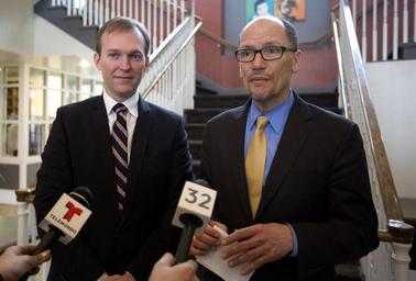 | Keywords: Salt Lake County Mayor Ben McAdams and U.S. Secretary of Labor Tom Perez, 2015.jpg Salt Lake County Mayor Ben McAdams and U S Secretary of Labor Tom Perez talk to the media while visiting Palmer Court the Road Home's permanent supportive housing development in Salt Lake City Utah on Friday Jan 30 2015 Official Department of Labor Photograph This official Department of Labor photograph is being made available only for publication by news organizations and/or for personal use printing by the subject s of the photograph The photograph may not be manipulated in any way and may not be used in commercial or political materials advertisements emails products and/or promotions that in any way suggest approval or endorsement of the Secretary or the Department of Labor Photo Credit U S Department of Labor https //www flickr com/photos/usdol/16426327872/ L-15-01-30-A-353 2015-01-30 11 38 https //www flickr com/people/52862363 N07 US Department of Labor PD-USGov US Department of Labor https //flickr com/photos/52862363 N07/16426327872 2016-09-06 05 33 45 United States Government Work Taken with Canon EOS 5D Mark III Ben McAdams Thomas Perez in 2015 |