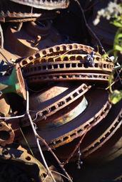 Keywords: salvage yard wreck vintage old broken red metal rust car parts