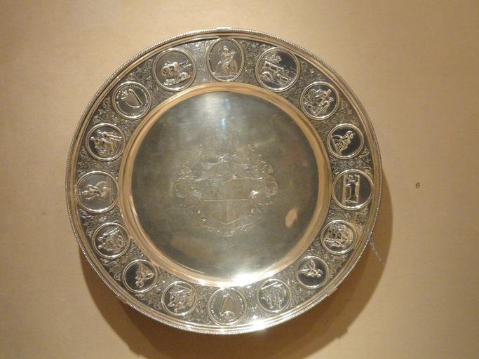 | Keywords: Salver, Irish - Indianapolis Museum of Art - DSC00544.JPG Silver salver Irish 19th century Exhibit in the Indianapolis Museum of Art Indianapolis Indiana USA I took this photograph 2011-04-01 15 33 28 Daderot Public domain Silver and gold in the Indianapolis Museum of Art Salvers |