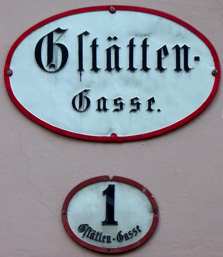 | Keywords: Salzburg, Straßenschild Gstättengasse, 1.jpeg de Salzburg Straßen- und Hausnummernschild Gstättengasse eo Salzburg AT stratnoma kaj domnumera tabuloj en la strato Gstättengasse self-photographed Aisano 2016-01-14 Cc-zero 47 48 1 6 N 13 2 22 0 E heading SW Fraktur street name signs in Salzburg Getreidegasse Street signs and house numbers in the Historic centre of the city of Salzburg Getreidegasse Gstättengasse Salzburg 1 house number Salzburg House numbers in Salzburg state Gstatten | ||||