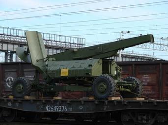 | Keywords: SAM S-75 Dvina 54.JPG en Russia transporting сomponents SAM S-75 Dvina by railroad ru Россия пе евозка компонентов ЗРК С-75 «Двина» по железной до оге Пусковая установка С-75 на шасси КЗУ-16 из-под КС-19 в составе эшелона own Sergeev Pavel 2010 S-75 Dvina Flat railway wagons of Russia Transport of military vehicles by rail |