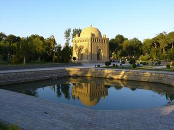 Keywords: samanid mausoleum tomb water mirroring ismail samanis tholos tomb brick architecture old bukhara uzbekistan evening twilight
