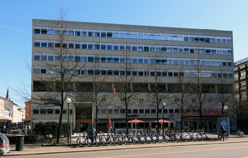 Keywords: Samfunnshuset Oslo.jpg Samfunnshuset Arbeidersamfunnets plass Oslo Norway Erected 1934-1941 for Oslo Arbeidersamfunn Architect Ove Bang Own 2008-04-17 User Mahlum Samfunnshuset Oslo April 2008 in Norway Bicycle racks