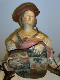 | Keywords: Sammlung Ludwig - Artefakt und Naturwunder-Leuchterweibchen Ludwig80218.jpg Leuchterweibchen der Sammlung Ludwig Lindenholz Halbfigur Hirschgeweih Allianzwappen Thüring Göldlin und Margaretha Muntprat Schweiz ca 1540 Suermondt-Ludwig-Museum Aachen Artefakt und Naturwunder Das Leuchterweibchen der Sammlung Ludwig 6 Februar - 17 April 2011 2011-02-06 13 27 18 photograph by Wuselig PD-old Lüsterweibchen Coats of arms of Muntprat family Muntprat Coats of arms of Göldlin family Goldlin Suermondt-Ludwig-Museum |