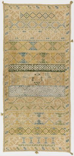| Keywords: Sampler - Google Art Project (6718060).jpg 6938587 Unknown /collection/cooper-hewitt-national-design-museum/artwork/sampler-unknown/6718060/ 75161 author /collection/cooper-hewitt-national-design-museum/ Cooper-Hewitt National Design Museum 3644669 http //www cooperhewitt org/ /collection/cooper-hewitt-national-design-museum/artwork/sampler-unknown/6718060/ 1700 18th century Medium silk embroidery on linen foundationTechnique embroidered in counted satin double running wrapped bars and stem stitches on plain weave ex coll Mrs Henry E Coe Eva Johnston Coe 6718060 False 1799 1941-69-1 http //collection cooperhewitt org/view/objects/asitem/id/75161 Bequest of Mrs Henry E Coe Sampler 1700 1800 18th century False 0 478515625 Object sampler-unknown Sampler s H x W 101 x 48 9 cm 39 3/4 x 19 1/4 in Medium silk embroidery on linen foundationTechnique embroidered in counted satin double running wrapped bars and stem stitches on plain weave ex coll Mrs Henry E Coe Eva Johnston Coe special url_id GQH5MrtPa_ajBg PD-old-100-1923 Google Art Project works by unknown artist Textiles in the Cooper “Hewitt Smithsonian Design Museum 18th-century samplers Google Art Project works in Cooper-Hewitt Smithsonian Design Museum |