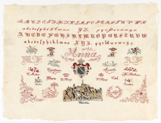 | Keywords: Sampler - Google Art Project (6814954).jpg 6938587 Unknown /collection/cooper-hewitt-national-design-museum/artwork/sampler-unknown/6814954/ 176872 author /collection/cooper-hewitt-national-design-museum/ Cooper-Hewitt National Design Museum 3644669 http //www cooperhewitt org/ /collection/cooper-hewitt-national-design-museum/artwork/sampler-unknown/6814954/ 1859 1859 Medium cotton and metal-wrapped silk embroidery on cotton foundation Technique embroidered in satin stem knot running stitches and overcast cord on plain weave foundation 425 6814954 False 1859 1981-28-275 http //collection cooperhewitt org/view/objects/asitem/id/176872 Bequest of Gertrude M Oppenheimer Sampler 1850 1860 w560 x h425 cm 1859 False 1 3027989821883 Object sampler-unknown Sampler s 560 H x W 42 5 x 55 9 cm 16 3/4 x 22 in Anna Medium cotton and metal-wrapped silk embroidery on cotton foundation Technique embroidered in satin stem knot running stitches and overcast cord on plain weave foundation special url_id 1gF9Xo-TeJ9Aww PD-old-70-1923 Google Art Project works by unknown artist Textiles in the Cooper “Hewitt Smithsonian Design Museum 1850s samplers Google Art Project works in Cooper-Hewitt Smithsonian Design Museum 1859 works |