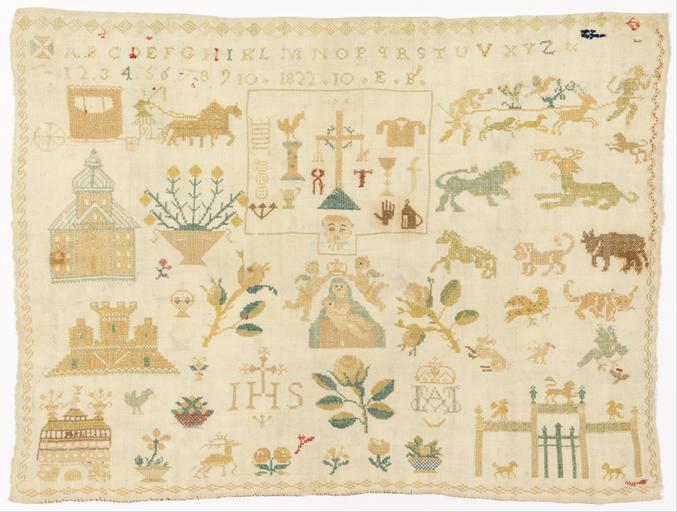 Keywords: Sampler - Google Art Project (6852098).jpg 6938587 Unknown /collection/cooper-hewitt-national-design-museum/artwork/sampler-unknown/6852098/ 176678 author /collection/cooper-hewitt-national-design-museum/ Cooper-Hewitt National Design Museum 3644669 http //www cooperhewitt org/ /collection/cooper-hewitt-national-design-museum/artwork/sampler-unknown/6852098/ 1822 1822 Medium silk linen and cotton embroidery on linen foundationTechnique embroidered in cross and stem stitches on a plain weave foundation; later addition in cross and surface satin stitches 460 6852098 False 1822 1981-28-10 http //collection cooperhewitt org/view/objects/asitem/id/176678 Bequest of Gertrude M Oppenheimer Sampler 1820 1830 w607 x h460 cm 1822 False 1 32299741602067 Object sampler-unknown Sampler s 607 H x W 46 x 60 7 cm 18 1/8 x 23 7/8 in E B Medium silk linen and cotton embroidery on linen foundationTechnique embroidered in cross and stem stitches on a plain weave foundation; later addition in cross and surface satin stitches special url_id tAHXcWDWdRJXxA PD-old-100-1923 Google Art Project works by unknown artist Textiles in the Cooper “Hewitt Smithsonian Design Museum 1820s samplers Google Art Project works in Cooper-Hewitt Smithsonian Design Museum 1822 works |