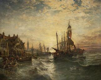 | Keywords: Samuel Bough - West Wemyss Harbour Fife.jpg  Artwork Creator Samuel Bough ca 1877 oil canvas cm 101 5 127 5 object history credit line signed indistinctly lower left and inscribed 'West Wemyss Harbour Fife/arrival of fishing boats sunrise/Sam Bough/Ivy Bank/Port Glasgow' accession number http //www bonhams com/auctions/20487/lot/27/ Bonhams PD-old-100 Samuel Bough 19th-century sailing ships in paintings Oil paintings of seascapes Paintings of Glasgow River Clyde 1870s paintings Images from Bonhams Paintings of seascapes with sunset |