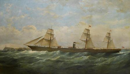 | Keywords: Samuel Walters - The S.S. City of Berlin outward bound passing Cape Pine Lighthouse (1876).jpg  Artwork Creator Samuel Walters 1876 oil canvas cm 87 6 151 1 object history credit line S Walters/1876 ~ lower left signature and date The S S City of Berlin was a British passenger liner built by Caird Company in Scotland She was the Inman Line's premier vessel for thirteen years and won the Blue Riband for the Inman Line in 1875 as the fastest liner on the Atlantic She was also the largest passenger ship for six years The S S City of Berlin served the Inman Line until 1893 when Inman was merged into the American Line and was operated by her new owners on both the American Line and Red Star Line until 1898 In 1895 she and the City of Chester were replaced in the American Line's weekly mail fleet by the new express liners the St Louis and the St Paul Renamed the S S Berlin she was placed on the Antwerp - New York route for the Red Star Line with occasional sailings for the American Line In 1898 the S S Berlin was sold to the U S Government for the Spanish-American War and was renamed Meade She trooped to the Philippines until she was damaged by a fire in San Francisco on January 31 1906 Repaired she continued service through World War I and was finally scrapped in 1921 <ref>http //www bonhams com/auctions/20970/lot/86/ Bonhams</ref><small> reflist </small> accession number http //www bonhams com/auctions/20970/lot/86/ Bonhams Jun 5 2013 - New York lot 86 PD-old-100 Samuel Walters City of Berlin ship 1874 Images from Bonhams |
