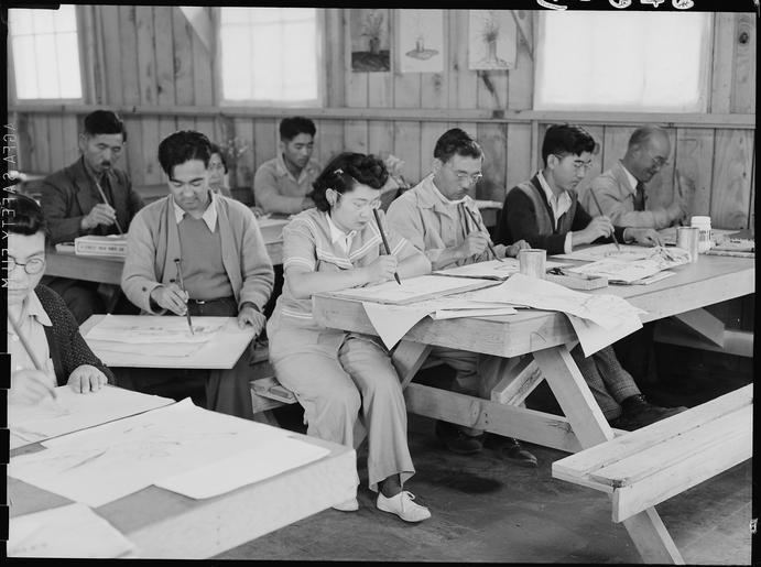 | Keywords: San Bruno, California. An art school has been established at this Assembly center with a well train . . . - NARA - 537946.tif Scope and content The full caption for this photograph reads San Bruno California An art school has been established at this Assembly center with a well trained experienced evacuee staff under the leadership of Professor Chiura Obata who before evacuation was an associate professor of art at the University of California This photograph shows part of the morning class learning free hand brush strokes General notes 537946 Local identifier 210-G-C646 Department of the Interior War Relocation Authority 02/16/1944 - 06/30/1946 NARA-Author Lange Dorothea 1895-1965 Photographer 1372774 <br /> Still Picture Records Section Special Media Archives Services Division NWCS-S National Archives at College Park 8601 Adelphi Road College Park MD 20740-6001 1942-06-16 Record group Record Group 210 Records of the War Relocation Authority 1941 - 1989 Record group ARC 537 Central Photographic File of the War Relocation Authority compiled 1942 - 1945 Series ARC 536000 File unit File unit ARC Variant control numbers NAIL Control Number NWDNS-210-G-C646 yes Other versions <gallery> File San_Bruno _California _An_art_school_has_been_established_at_this_Assembly_center_with_a_well_train_ _ _ _-_NARA_-_537946 tif tif File San_Bruno _California _An_art_school_has_been_established_at_this_Assembly_center_with_a_well_train_ _ _ _-_NARA_-_537946 jpg jpg </gallery> NARA-cooperation PD-USGov Dorothea Lange NARA TIF images with categorized JPGs Chiura Obata |