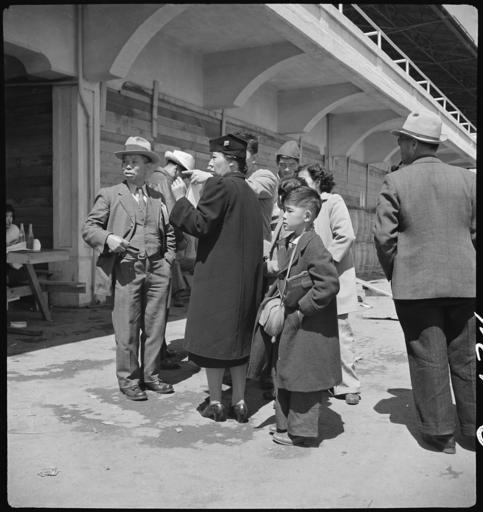 | Keywords: San Bruno, California. Family of Japanese ancestry arrives at assembly center at Tanforan Race Trac . . . - NARA - 537486.jpg Scope and content The full caption for this photograph reads San Bruno California Family of Japanese ancestry arrives at assembly center at Tanforan Race Track Evacuees will be transferred later to War Relocation Authority centers where they will be housed for the duration General notes 537486 Local identifier 210-G-C134 Department of the Interior War Relocation Authority 02/16/1944 - 06/30/1946 NARA-Author Lange Dorothea 1895-1965 Photographer 1372774 <br /> Still Picture Records Section Special Media Archives Services Division NWCS-S National Archives at College Park 8601 Adelphi Road College Park MD 20740-6001 1942-04-29 Record group Record Group 210 Records of the War Relocation Authority 1941 - 1989 Record group ARC 537 Central Photographic File of the War Relocation Authority compiled 1942 - 1945 Series ARC 536000 File unit File unit ARC Variant control numbers NAIL Control Number NWDNS-210-G-C134 Other versions <gallery> File San_Bruno _California _Family_of_Japanese_ancestry_arrives_at_assembly_center_at_Tanforan_Race_Trac_ _ _ _-_NARA_-_537486 tif tif File San_Bruno _California _Family_of_Japanese_ancestry_arrives_at_assembly_center_at_Tanforan_Race_Trac_ _ _ _-_NARA_-_537486 jpg jpg </gallery> NARA-cooperation PD-USGov Tanforan Assembly Center People Photographs taken on 1942-04-29 Dorothea Lange JA internment Tanforan |