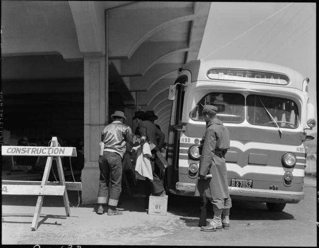 | Keywords: San Bruno, California. A Greyhound bus bringing evacuees to the assembly center. - NARA - 537490.jpg Scope and content General notes 537490 Local identifier 210-G-C138 Department of the Interior War Relocation Authority 02/16/1944 - 06/30/1946 NARA-Author Lange Dorothea 1895-1965 Photographer 1372774 <br /> Still Picture Records Section Special Media Archives Services Division NWCS-S National Archives at College Park 8601 Adelphi Road College Park MD 20740-6001 1942-04-29 Record group Record Group 210 Records of the War Relocation Authority 1941 - 1989 Record group ARC 537 Central Photographic File of the War Relocation Authority compiled 1942 - 1945 Series ARC 536000 File unit File unit ARC Variant control numbers NAIL Control Number NWDNS-210-G-C138 Other versions <gallery> File San_Bruno _California _A_Greyhound_bus_bringing_evacuees_to_the_assembly_center _-_NARA_-_537490 tif tif File San_Bruno _California _A_Greyhound_bus_bringing_evacuees_to_the_assembly_center _-_NARA_-_537490 jpg jpg </gallery> NARA-cooperation PD-USGov Dorothea Lange Tanforan Assembly Center |