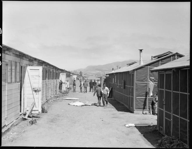 | Keywords: San Bruno, California. Looking down one of the avenues between rows of barracks. The ones on the r . . . - NARA - 537929.jpg Scope and content The full caption for this photograph reads San Bruno California Looking down one of the avenues between rows of barracks The ones on the right are converted horse stalls and those on the left are newly contructed and typical of an assembly center and relocation centers throughout the west They are 100 feet long covered with black tar paper contain five 1-room apartments each of which accomodate a family The attitudes of the people in this photograph are typical of assembly centers- there is not much to do not enough work available They mill around they visit they stroll they linger to while away the hours General notes 537929 Local identifier 210-G-C629 Department of the Interior War Relocation Authority 02/16/1944 - 06/30/1946 NARA-Author Lange Dorothea 1895-1965 Photographer 1372774 <br /> Still Picture Records Section Special Media Archives Services Division NWCS-S National Archives at College Park 8601 Adelphi Road College Park MD 20740-6001 1942-06-16 Record group Record Group 210 Records of the War Relocation Authority 1941 - 1989 Record group ARC 537 Central Photographic File of the War Relocation Authority compiled 1942 - 1945 Series ARC 536000 File unit File unit ARC Variant control numbers NAIL Control Number NWDNS-210-G-C629 Other versions <gallery> File San_Bruno _California _Looking_down_one_of_the_avenues_between_rows_of_barracks _The_ones_on_the_r_ _ _ _-_NARA_-_537929 tif tif File San_Bruno _California _Looking_down_one_of_the_avenues_between_rows_of_barracks _The_ones_on_the_r_ _ _ _-_NARA_-_537929 jpg jpg </gallery> NARA-cooperation PD-USGov Dorothea Lange Tanforan Assembly Center |