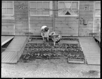 | Keywords: San Bruno, California. Mrs. Fujita and her neighbor inspecting the tiny vegetable garden she has p . . . - NARA - 537911.jpg Scope and content The full caption for this photograph reads San Bruno California Mrs Fujita and her neighbor inspecting the tiny vegetable garden she has planted in front of their barracks General notes 537911 Local identifier 210-G-C610 Department of the Interior War Relocation Authority 02/16/1944 - 06/30/1946 NARA-Author Lange Dorothea 1895-1965 Photographer 1372774 <br /> Still Picture Records Section Special Media Archives Services Division NWCS-S National Archives at College Park 8601 Adelphi Road College Park MD 20740-6001 1942-06-16 Record group Record Group 210 Records of the War Relocation Authority 1941 - 1989 Record group ARC 537 Central Photographic File of the War Relocation Authority compiled 1942 - 1945 Series ARC 536000 File unit File unit ARC Variant control numbers NAIL Control Number NWDNS-210-G-C610 Other versions <gallery> File San_Bruno _California _Mrs _Fujita_and_her_neighbor_inspecting_the_tiny_vegetable_garden_she_has_p_ _ _ _-_NARA_-_537911 tif tif File San_Bruno _California _Mrs _Fujita_and_her_neighbor_inspecting_the_tiny_vegetable_garden_she_has_p_ _ _ _-_NARA_-_537911 jpg jpg </gallery> NARA-cooperation PD-USGov Dorothea Lange Tanforan Assembly Center |
