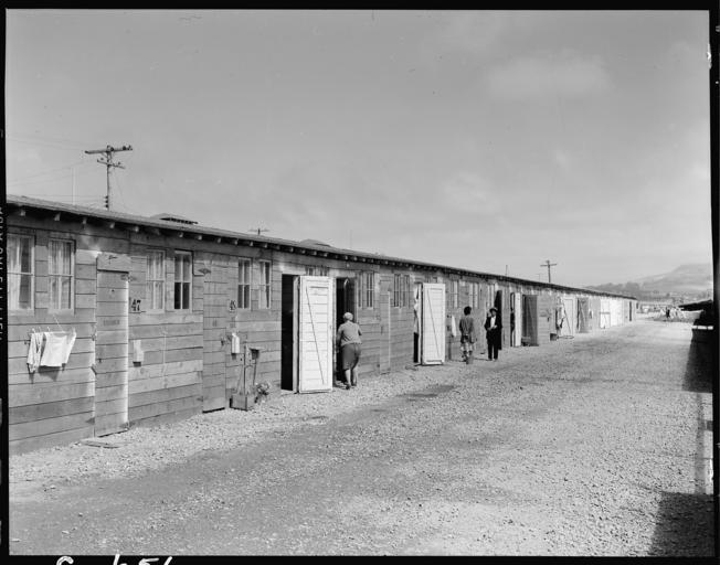 | Keywords: San Bruno, California. Shown here is one type of barracks for family use. These were formerly stal . . . - NARA - 537954.jpg Scope and content The full caption for this photograph reads San Bruno California Shown here is one type of barracks for family use These were formerly stalls for race horses Each family is assigned to two small rooms the inner one without outside nor or window The center has been in operation about six weeks General notes 537954 Local identifier 210-G-C656 Department of the Interior War Relocation Authority 02/16/1944 - 06/30/1946 NARA-Author Lange Dorothea 1895-1965 Photographer 1372774 <br /> Still Picture Records Section Special Media Archives Services Division NWCS-S National Archives at College Park 8601 Adelphi Road College Park MD 20740-6001 1942-06-16 Record group Record Group 210 Records of the War Relocation Authority 1941 - 1989 Record group ARC 537 Central Photographic File of the War Relocation Authority compiled 1942 - 1945 Series ARC 536000 File unit File unit ARC Variant control numbers NAIL Control Number NWDNS-210-G-C656 Other versions <gallery> File San_Bruno _California _Shown_here_is_one_type_of_barracks_for_family_use _These_were_formerly_stal_ _ _ _-_NARA_-_537954 tif tif File San_Bruno _California _Shown_here_is_one_type_of_barracks_for_family_use _These_were_formerly_stal_ _ _ _-_NARA_-_537954 jpg jpg </gallery> NARA-cooperation PD-USGov Dorothea Lange Tanforan Assembly Center |