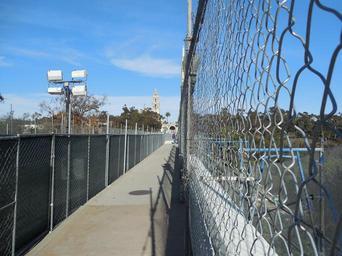 Keywords: san diego balboa park california city urban construction bridge sunlight shadows concrete cloud sky walkway sidewalk