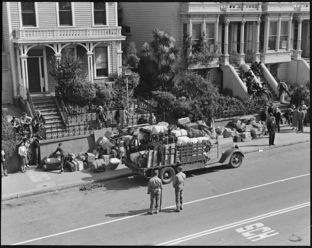 | Keywords: San Francisco, California. Here soldiers are shown guarding bed-rolls and luggage of Japanese who a . . . - NARA - 537746.jpg Scope and content The full caption for this photograph reads San Francisco California Here soldiers are shown guarding bed-rolls and luggage of Japanese who are being evacuated this morning from the Japanese quarter in San Francisco The Civil Control Station from which the buses leave is across the street General notes 537746 Local identifier 210-G-C424 Department of the Interior War Relocation Authority 02/16/1944 - 06/30/1946 NARA-Author Lange Dorothea 1895-1965 Photographer 1372774 <br /> Still Picture Records Section Special Media Archives Services Division NWCS-S National Archives at College Park 8601 Adelphi Road College Park MD 20740-6001 1942-04-29 Record group Record Group 210 Records of the War Relocation Authority 1941 - 1989 Record group ARC 537 Central Photographic File of the War Relocation Authority compiled 1942 - 1945 Series ARC 536000 File unit File unit ARC Variant control numbers NAIL Control Number NWDNS-210-G-C424 Other versions <gallery> File San_Francisco _California _Here_soldiers_are_shown_guarding_bed-rolls_and_luggage_of_Japanese_who_a_ _ _ _-_NARA_-_537746 tif tif File San_Francisco _California _Here_soldiers_are_shown_guarding_bed-rolls_and_luggage_of_Japanese_who_a_ _ _ _-_NARA_-_537746 jpg jpg </gallery> NARA-cooperation PD-USGov Dorothea Lange Japanese American internment processing in San Francisco |