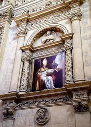 | Keywords: San Isidoro de Sevilla, de Murillo (SacristÃa mayor de la catedral de Sevilla).jpg Artwork Creator Bartolomé Esteban Perez Murillo San Isidoro c 556-636 que fue el vigésimo cuarto arzobispo de Sevilla entre los años 600 y 636 aparece con mitra y báculo Y la tradición señala que el rostro del santo que destaca por estar profundamente concentrado en la lectura corresponde al del licenciado Juan López de Tabalán 4 avril 2008 Il y a 1372 ans mourait Isidore de Séville saint patron des informaticiens et encyclopédistes 23 mars 2011 Isidore de Séville « Ces Wikipédiens sont vraiment les meilleurs » 1655 oil canvas Size cm 193 165 Catedral de Santa MarÃa de la Sede de Sevilla Sacristia mayor de la catedral de Sevilla object history exhibition history credit line accession number http //leyendasdesevilla blogspot com es/2015/02/visitando-la-catedral-xxi-la-sacristia html PD-old-100 Paintings in the SacristÃa mayor of Seville Cathedral Paintings by Bartolomé Esteban Murillo in the Cathedral of Seville Saints by Bartolomé Esteban Murillo Isidor of Sevilla Isidore of Seville 1620s oil on canvas paintings in Spain 1620s paintings from Spain 17th-century oil paintings of sitting men at full length 17th-century paintings of Christian saints Baroque paintings of men Paintings of Christian saints holding books Paintings of men holding open books Paintings of reading men |
