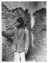 Keywords: Sancristan at wall of Mission Tumacacori, Arizona, ca.1908 (CHS-4190).jpg Mission San José de Tumacácori Arizona ca 1908 He is gesturing toward a feature on the wall as he explains the construction methodology He has a dark beard and moustache and wears a jacket over a button-up striped shirt ---- Call number CHS-4190 Photographer James George Wharton Filename CHS-4190 Coverage date circa 1908 Part of collection California Historical Society Collection 1860-1960 Format glass plate negatives Type images Part of subcollection Title Insurance and Trust and C C Pierce Photography Collection 1860-1960 Repository name USC Libraries Special Collections Accession number 4190 Microfiche number 1-151- Archival file chs_Volume96/CHS-4190 tiff Repository address Doheny Memorial Library Los Angeles CA 90089-0189 Geographic subject country USA Format aacr2 2 photographs glass photonegative photoprint b w ; 22 x 17 cm Rights Digitally reproduced by the USC Digital Library; From the California Historical Society Collection at the University of Southern California Subject adlf religious facilities Project USC Repository email specol usc edu Contributing entity California Historical Society Date created circa 1908 Publisher of the digital version University of Southern California Libraries Format aat photographic prints; photographs Geographic subject state Arizona Legacy record ID chs-m16679; USC-1-1-1-14013 Access conditions Send requests to address or e-mail given Phone 213 821-2366; fax 213 740-2343 Subject file heading Outside California -- Arizona -- General; Arizona -- Mission Tumacacori Subject lcsh Missions Spanish Subject Tumacacori Mission circa 1908 date created James George Wharton http //digitallibrary usc edu/cdm/ref/collection/p15799coll65/id/16612 PD-old-70-1923 Mission San José de Tumacácori Native Americans of Arizona Walls in Arizona Arizona in the 1900s Tumacacori 1908 in the United States Arizona Black and white photographs of Arizona Mission Tumacacori Photographs of the Indigenous peoples of North America Mission Tumacácori Images from USC Digital Library uploaded by Fæ California Historical Society Collection 1860-1960 Glass plate negatives Photographs by George Wharton James |