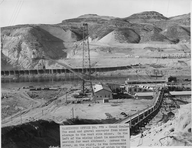 | Keywords: "The sand and gravel conveyor from mixer storage to the west side mixer. On the left of the mixing plant is excavated... - NARA - 294067.tif Scope and content Photograph from Volume Two of a series of photo albums documenting the construction of the Grand Coulee Dam and related work on the Columbia Basin Project General notes 294067 Local identifier Department of the Interior Bureau of Reclamation Engineering and Research Center 05/18/1981 - 03/04/1988 NARA's Rocky Mountain Region Denver NRGA Building 48 Denver Federal Center West 6th Avenue and Kipling Street Denver CO 80225-0307 1935-11-04 Record group Record Group 115 Records of the Bureau of Reclamation 1889 - 2008 Record group ARC 444 Photograph albums compiled 1903 - 1972 Series ARC 293611 File unit File unit ARC Variant control numbers NAIL Control Number NRG-115-CONSTPHO85006-COLBASIN2779 yes Other versions <gallery> File The_sand_and_gravel_conveyor_from_mixer_storage_to_the_west_side_mixer _On_the_left_of_the_mixing_plant_is_excavated _-_NARA_-_294067 tif tif File The_sand_and_gravel_conveyor_from_mixer_storage_to_the_west_side_mixer _On_the_left_of_the_mixing_plant_is_excavated _-_NARA_-_294067 jpg jpg </gallery> NARA-cooperation PD-USGov Construction of the Grand Coulee Dam NARA TIF images with categorized JPGs |