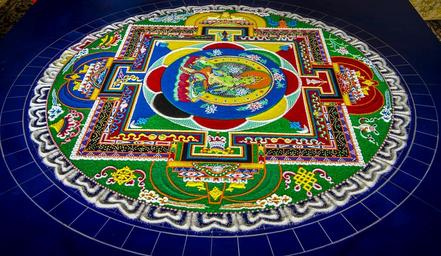 | Keywords: circle round indoor Tara (Sanskrit: तारा, tārā; Tib. སྒྲོལ་མ, Dölma) or Ārya Tārā, also known as Jetsun Dölma (Tibetan language:rje btsun sgrol ma) in Tibetan Buddhism, is a female Bodhisattva in Mahayana Buddhism who appears as a female Buddha in Vajrayana Buddhism. She is known as the "mother of liberation", and represents the virtues of success in work and achievements. She is known as Tara Bosatsu (多羅菩薩) in Japan, and occasionally as Duōluó Púsà (多羅菩薩) in Chinese Buddhism. The most widely known forms of Tārā are: Green Tārā, (Syamatara) known as the Buddha of enlightened activity. en.wikipedia.org/wiki/Tara_(Buddhism) The Sand Mandala (Tibetan: དཀྱིལ་འཁོར།, Wylie: dkyil 'khor; Chinese: 沙坛城; pinyin: Shā Tánchéng) is a Tibetan Buddhist tradition involving the creation and destruction of mandalas made from coloured sand. A sand mandala is ritualistically dismantled once it has been completed and its accompanying ceremonies and viewing are finished to symbolize the Buddhist doctrinal belief in the transitory nature of material life. en.wikipedia.org/wiki/Sand_mandala Tara (Sanskrit: तारा, tārā; Tib. སྒྲོལ་མ, Dölma) or Ārya Tārā, also known as Jetsun Dölma (Tibetan language:rje btsun sgrol ma) in Tibetan Buddhism, is a female Bodhisattva in Mahayana Buddhism who appears as a female Buddha in Vajrayana Buddhism. She is known as the "mother of liberation", and represents the virtues of success in work and achievements. She is known as Tara Bosatsu (多羅菩薩) in Japan, and occasionally as Duōluó Púsà (多羅菩薩) in Chinese Buddhism. The most widely known forms of Tārā are: Green Tārā, (Syamatara) known as the Buddha of enlightened activity. en.wikipedia.org/wiki/Tara_(Buddhism) The Sand Mandala (Tibetan: དཀྱིལ་འཁོར།, Wylie: dkyil 'khor; Chinese: 沙坛城; pinyin: Shā Tánchéng) is a Tibetan Buddhist tradition involving the creation and destruction of mandalas made from coloured sand. A sand mandala is ritualistically dismantled once it has been completed and its accompanying ceremonies and viewing are finished to symbolize the Buddhist doctrinal belief in the transitory nature of material life. en.wikipedia.org/wiki/Sand_mandala |