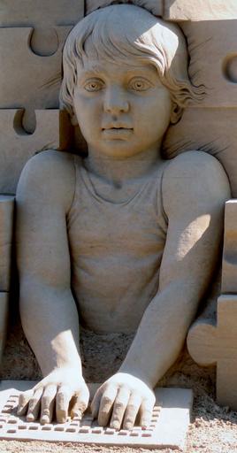 Keywords: sand sculpture art sculpture puzzle child eyes hair hands exhibition rorschach lake constance