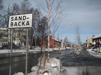 Keywords: Sandbacka.JPG en Sandbacka Umeå Sweden sv Här börjar Sandbacka Umeå own Xanor 2011-03-04 Cc-zero Umeå