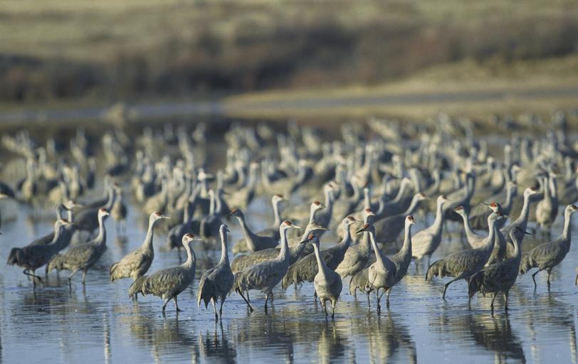 Keywords: sandhill cranes birds wildlife flock nature beak waterfowl outdoors portrait standing water large fowl feathered