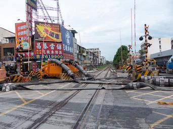 | Keywords: Sanduo 1st Road after Explosion Record 20140811-001b.jpg zh-tw 從高雄市苓雅 三多二路與高雄第 臨港線的平交道南 第 臨港線,大氣爆後第 臨港線 駛中,臺南市政 支援的重型抽水機尚 平交道旁 2014-08-11 18 20 47 Own 玄史生 other versions 250px TRA Kaohsiung Harbor Line Level crossings in Taiwan Pawn shops in Taiwan 2014 Kaohsiung gas explosions 玄史生写 文庫 Taken with Leica V-Lux 4 cc-zero |