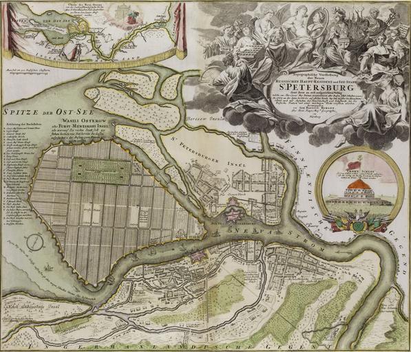 | Keywords: Sankt Petersburg 1719-1723.jpg Sankt Petersburg 1719-1723 Kolorierter Kupferstich und Radierung Topographische Vorstellung der Neuen Hauptresidenz und See-Stadt St Petersburg samt ihrer zu erst aufgerichteten Vestung http //www hampel-auctions com/ Hampel Auctions between 1719 1723 Johann Baptist Homann 1664-1724 PD-old-100 Images from Hampel Auctions Homann map St Petersburg ab1720 | ||||