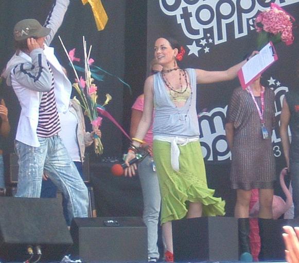 | Keywords: SannaBråding2005.jpg Swedish actress and radio host Sanna Bråding at Gatufesten in Sundsvall Sweden Among the partly obscured people can be found radio host Anton Berg left front pop singer-songwriter Robyn left back and BWO keyboardist Marina Schiptjenko right back Self-made work Fujifilm FinePix A303 camera 2005-07-09 Hans Lindqvist PD-Sweden-self Gatufesten 2005 in Stenstan Sanna Bråding | ||||
