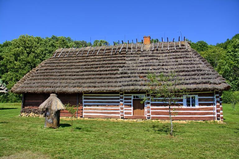 Keywords: sanok open air museum rural cottage wooden balls the roof of the poland old architecture cottage straw the museum thatched rural architecture monument village grass