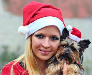 Keywords: santa claus dog woman portrait yorkshire terrier christmas