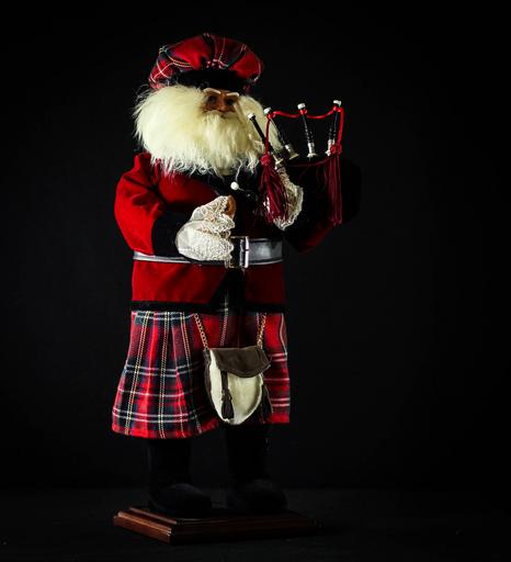 Keywords: santa claus saint nicholas kris kringle father christmas santa christmas holiday decoration white beard fur coat doll mannequin quilt bagpipes sporran tartan plaid tam tam o shanter
