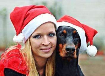Keywords: santa claus woman doberman christmas felame portrait dog